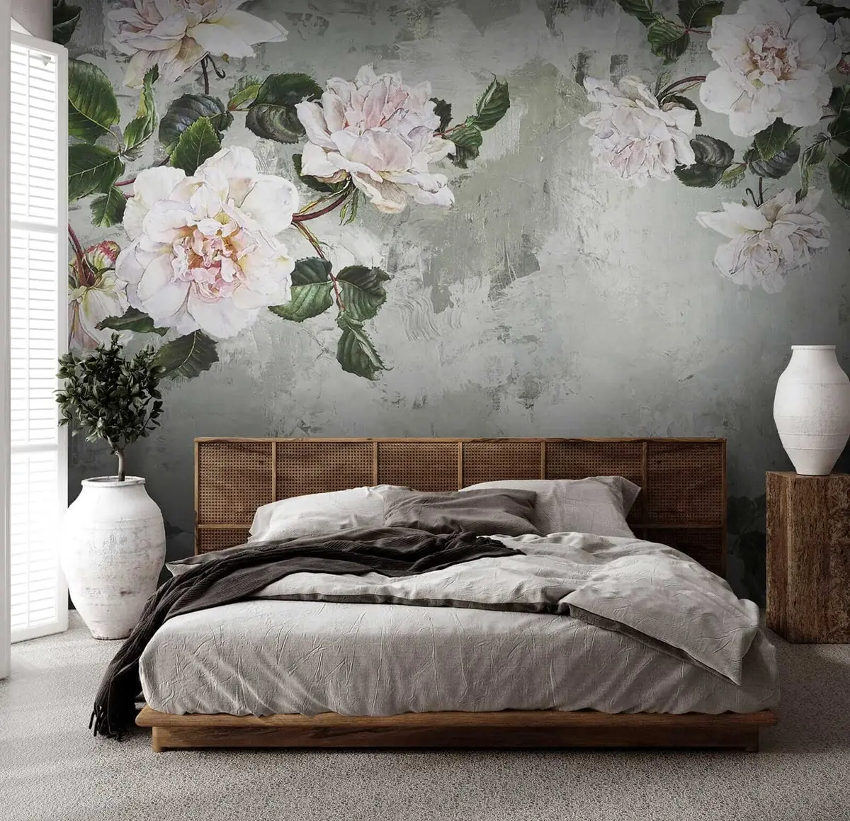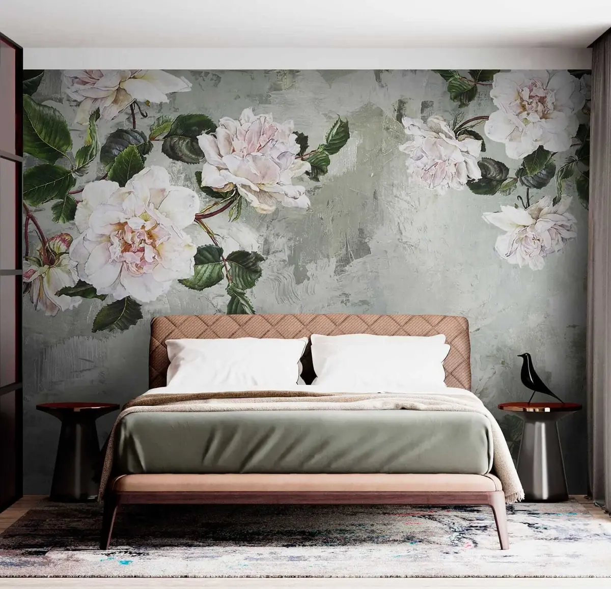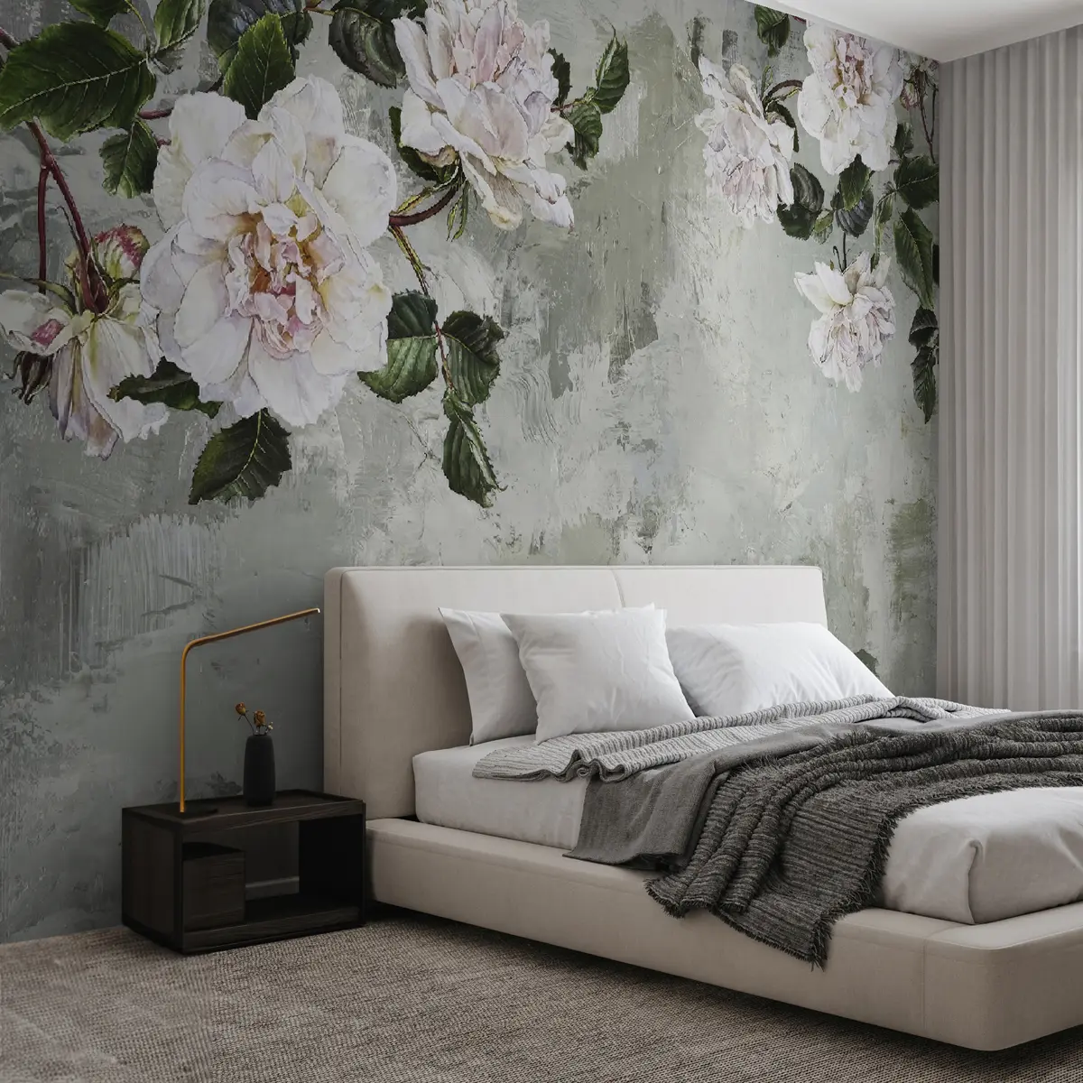 Fototapet Blomstrende grene på baggrund af en shabby væg Nr. u37301