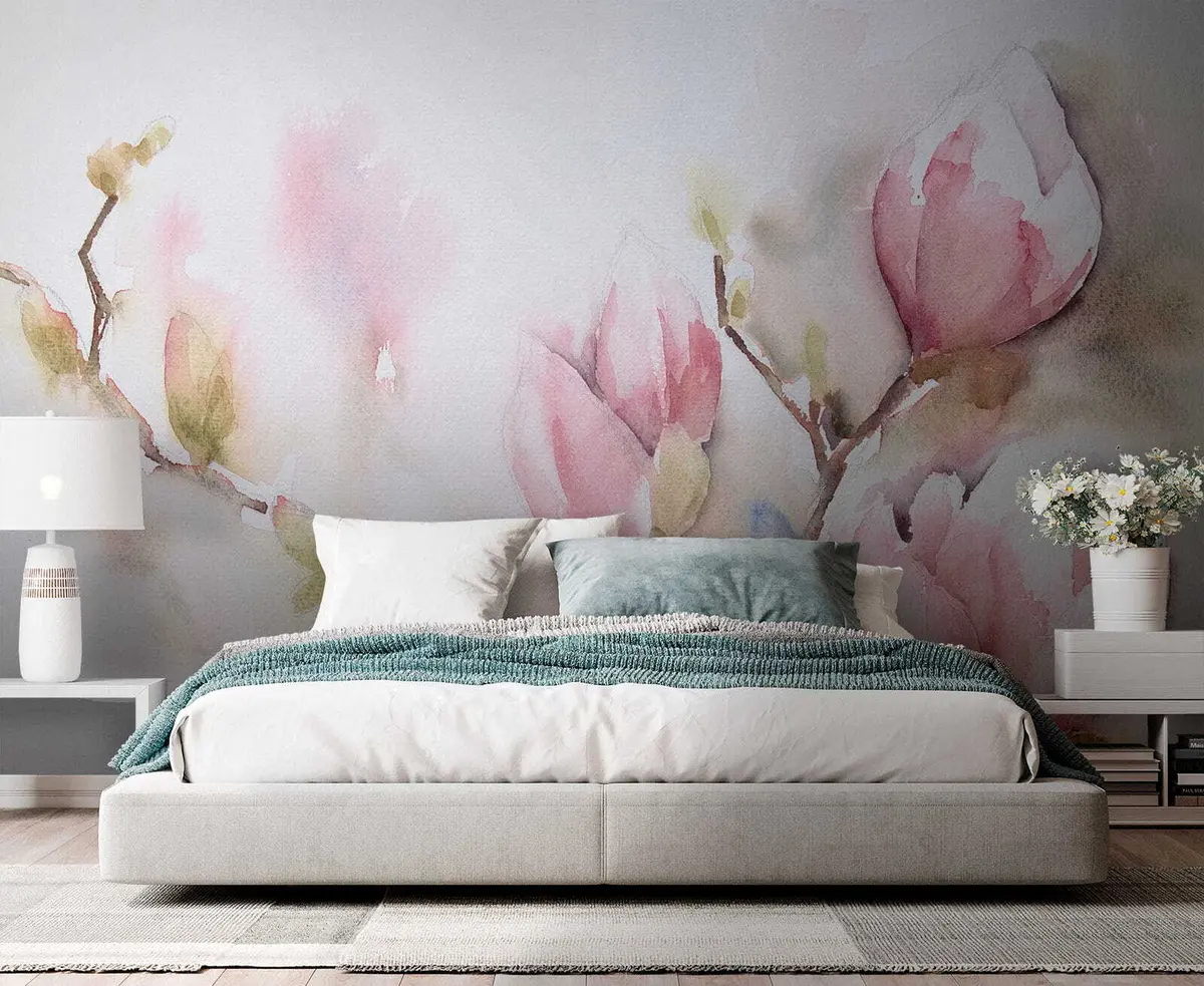 Fototapet Magnolier blomstrer, akvarelmaleri Nr. u53757