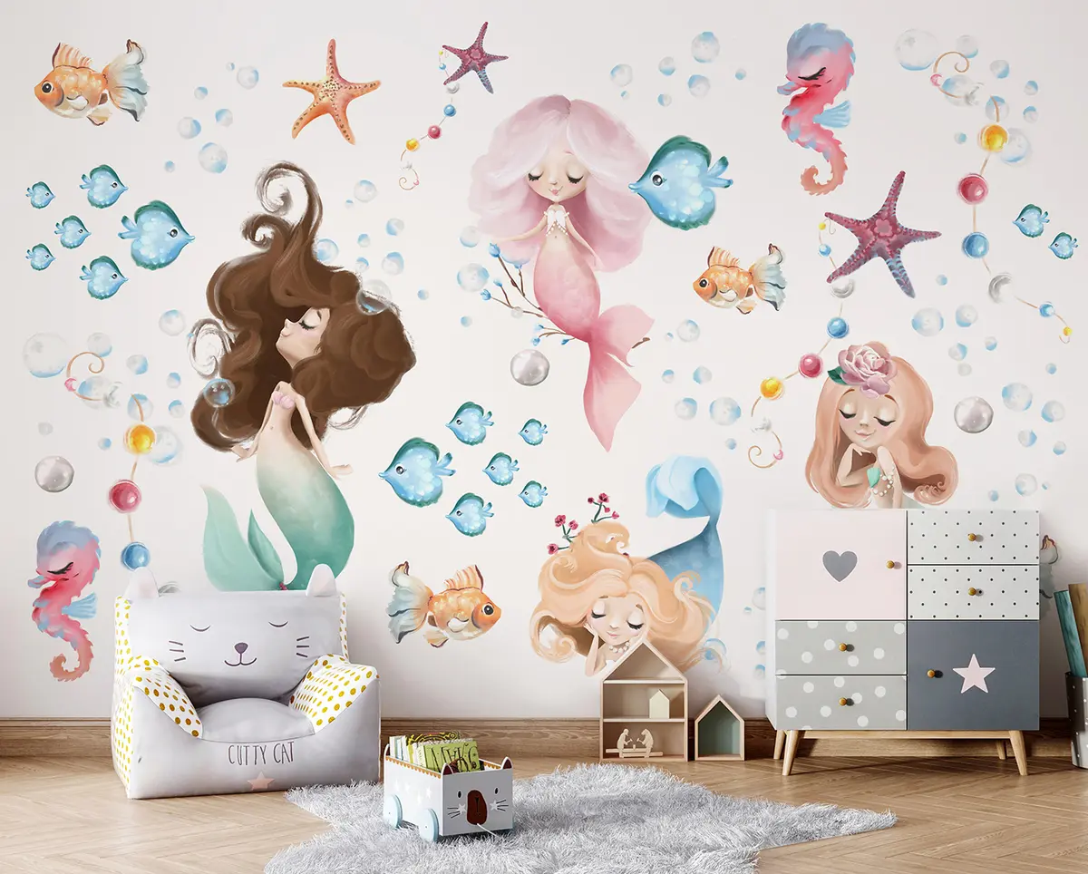 Fototapet Akvarel havfruer og fisk Nr. u96868