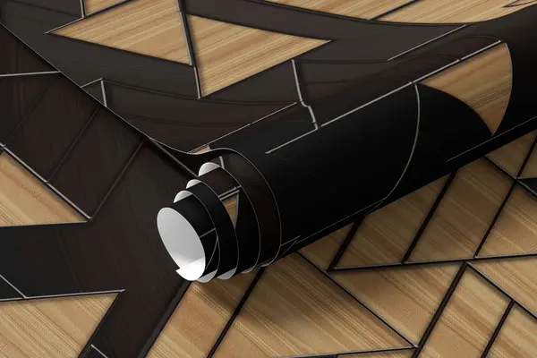 Fototapet 3D-trekanter i mørkegråt og trækorn med prægede linjer Nr. u75167