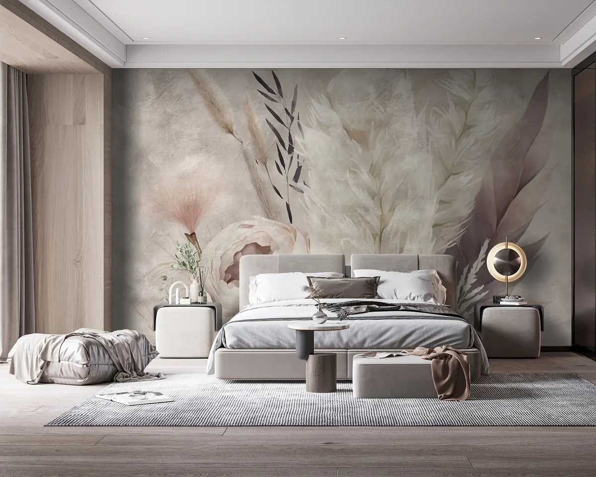 Fototapet Sammensætning af fjer og blomster Nr. u95403