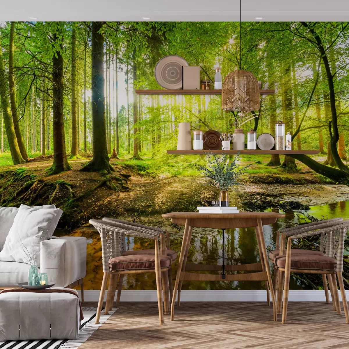 Fototapet Gennemsigtighed i skovens strøm Nr. u93621