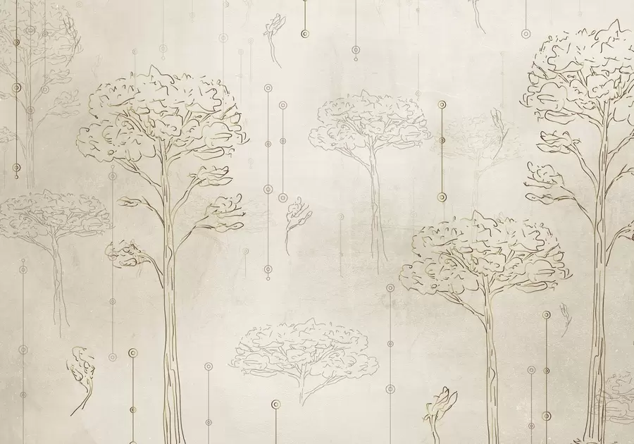 Nøgne træer i abstrakt, pastelfarvet, sløret, minimalistisk vinterlandskab med en blød, diset baggrund