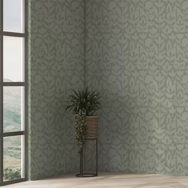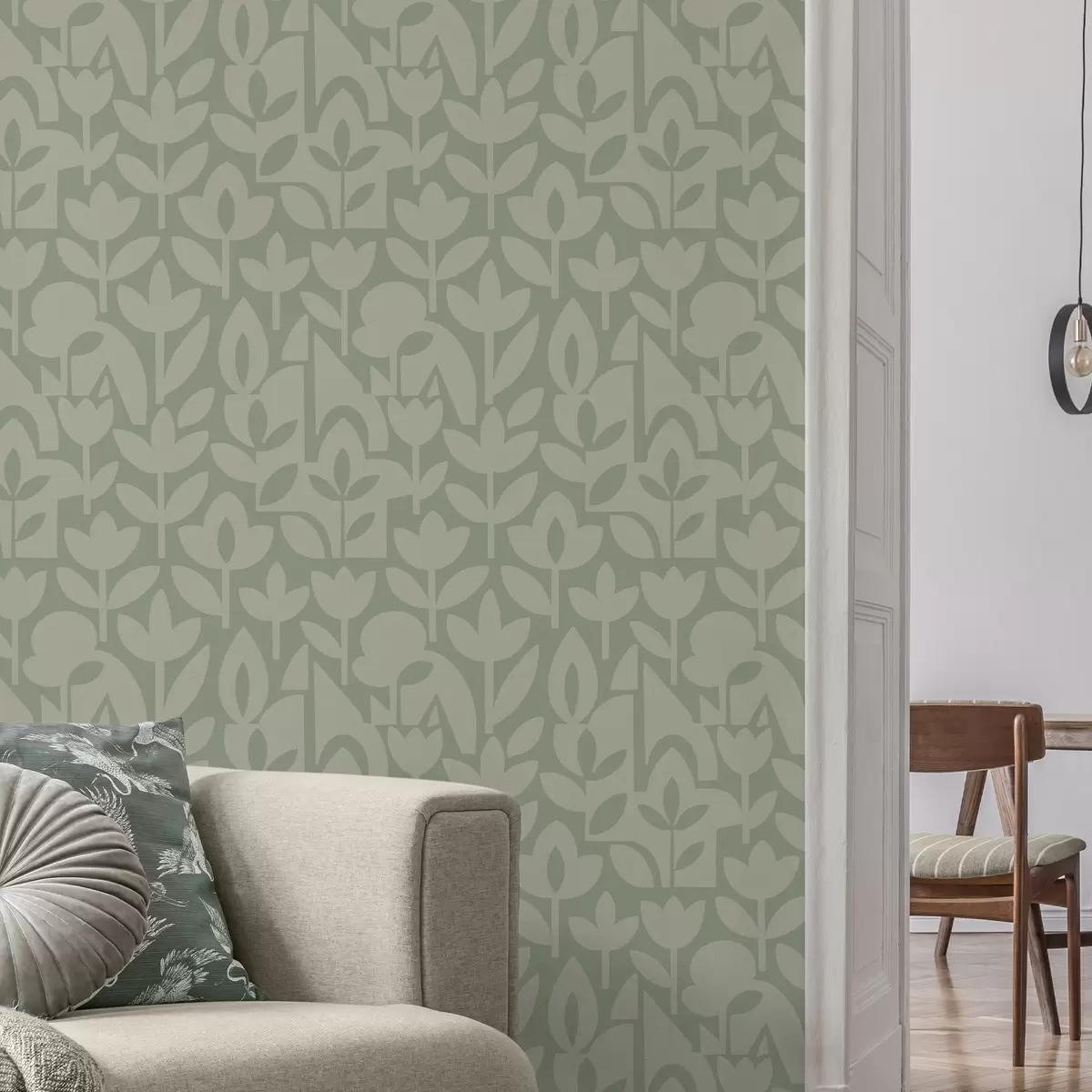 Baggrunde Geometriske blomstersilhuetter i blød salvie Nr. a00875v1