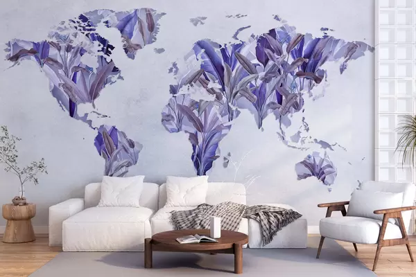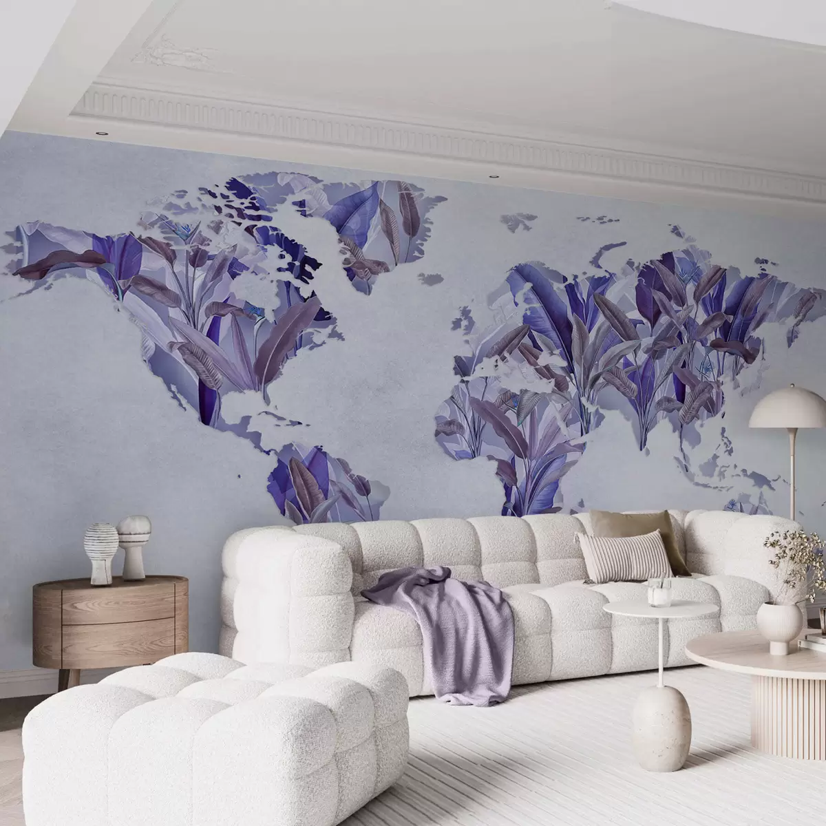 Fototapet Et lilla verdenskort lavet af bananblade Nr. c00007v1