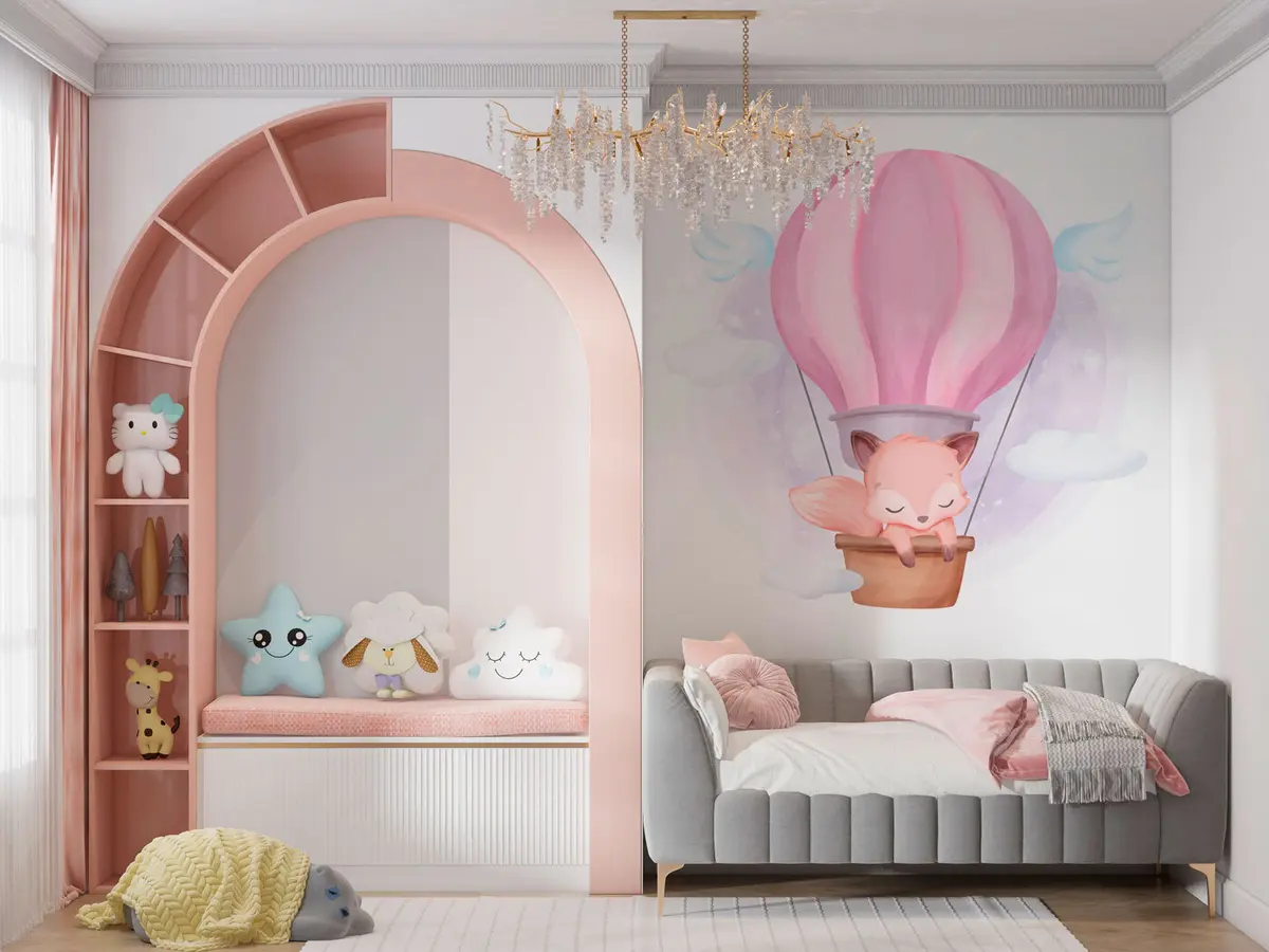 Fototapet Illustration af en ræv på en varmluftsballon Nr. u97395