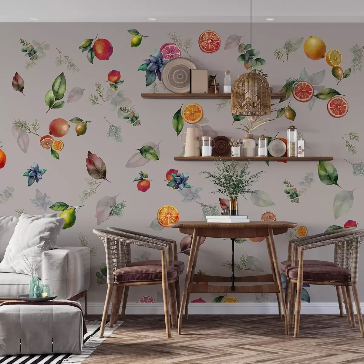 Fototapet Farverige frugter og blade i mønster Nr. u98770v1