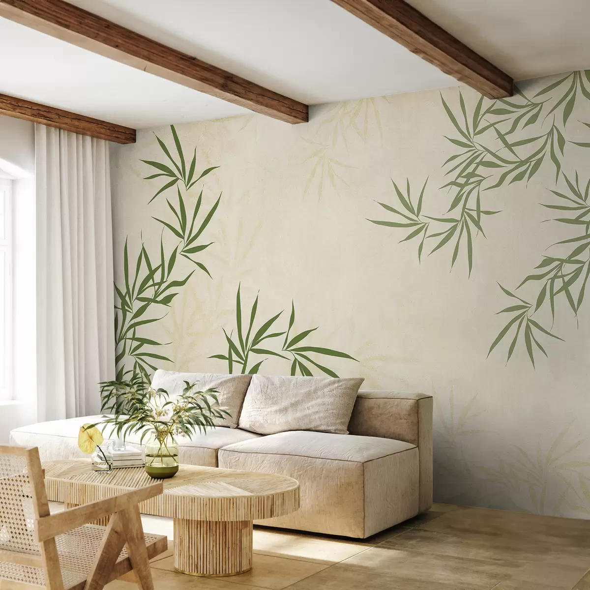 Fototapet Plant kviste, bambus, vintage stil, tekstur baggrund, gul, grøn farve Nr. w00817
