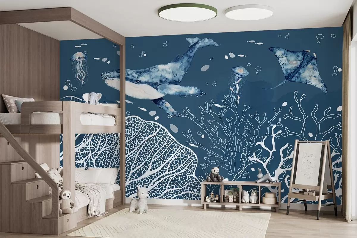Fototapet Undervandsvidundere i fredfyldte blå nuancer Nr. w00848v1