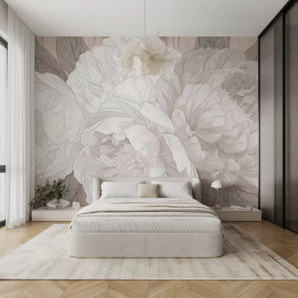 Fototapet Strukturerede store pæonblomster i beige nuancer Nr. w01141