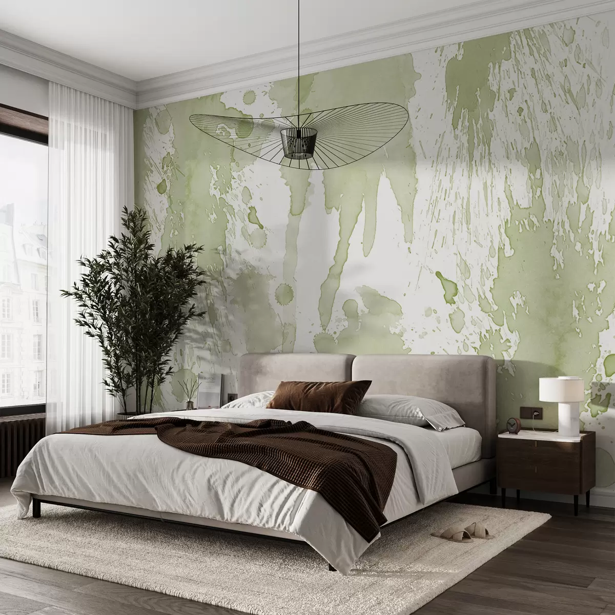 Fototapet Akvarel stænk, maling tegning abstraktion, grøn farve Nr. w01285