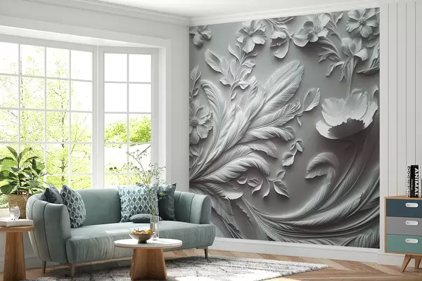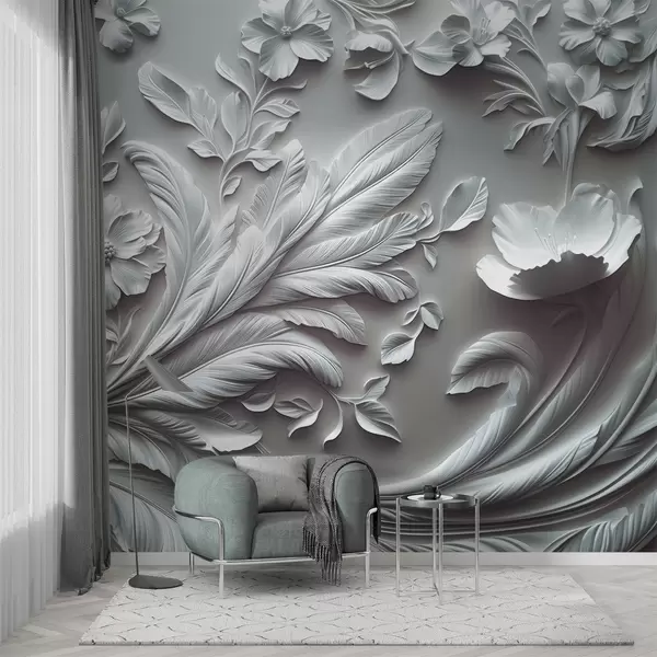 Fototapet Udsøgte hævede blomster og blade i grå toner Nr. w01356v2