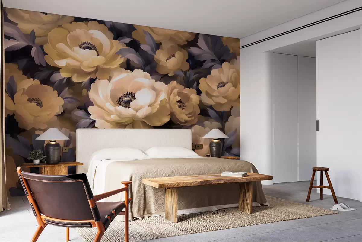 Fototapet Blomstret oliemaleristil baseret på beige og lilla farve Nr. w01581