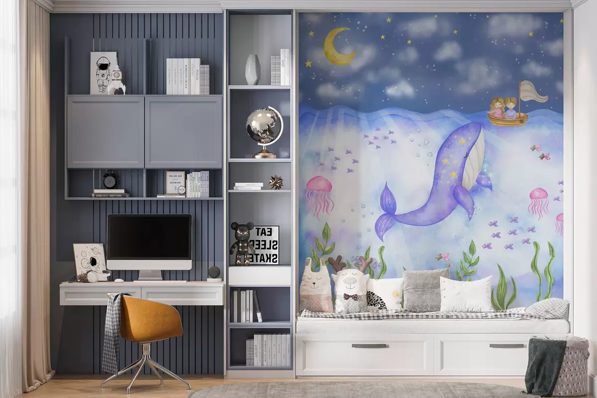 Fototapet Hval svømmer under en stjerneklar nat Nr. w01965