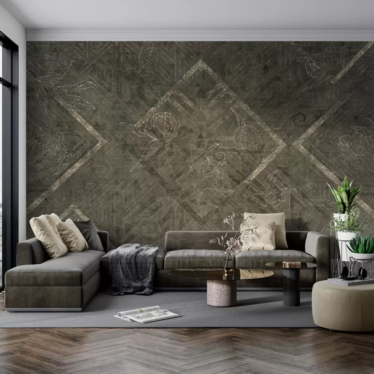 Fototapet Grunge-tekstur med blomstermønstre i gul farve Nr. w02079