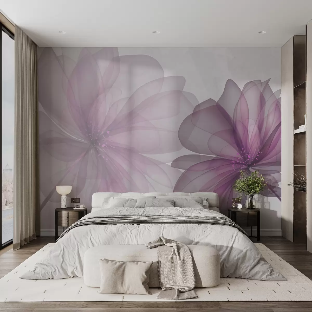Fototapet gennemsigtige store lyserøde blomster Nr. w02205