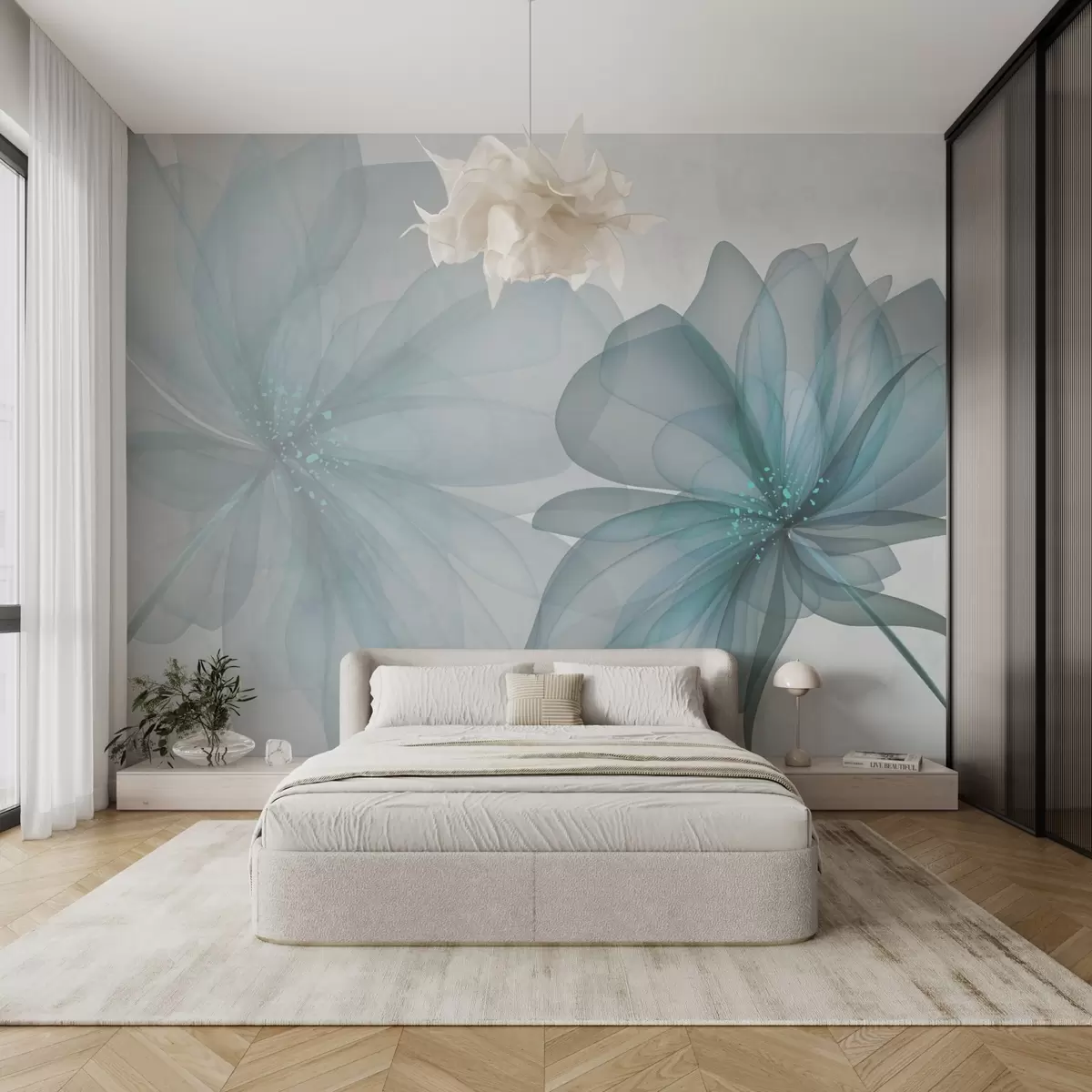 Fototapet gennemsigtige store blå blomster Nr. w02205v1