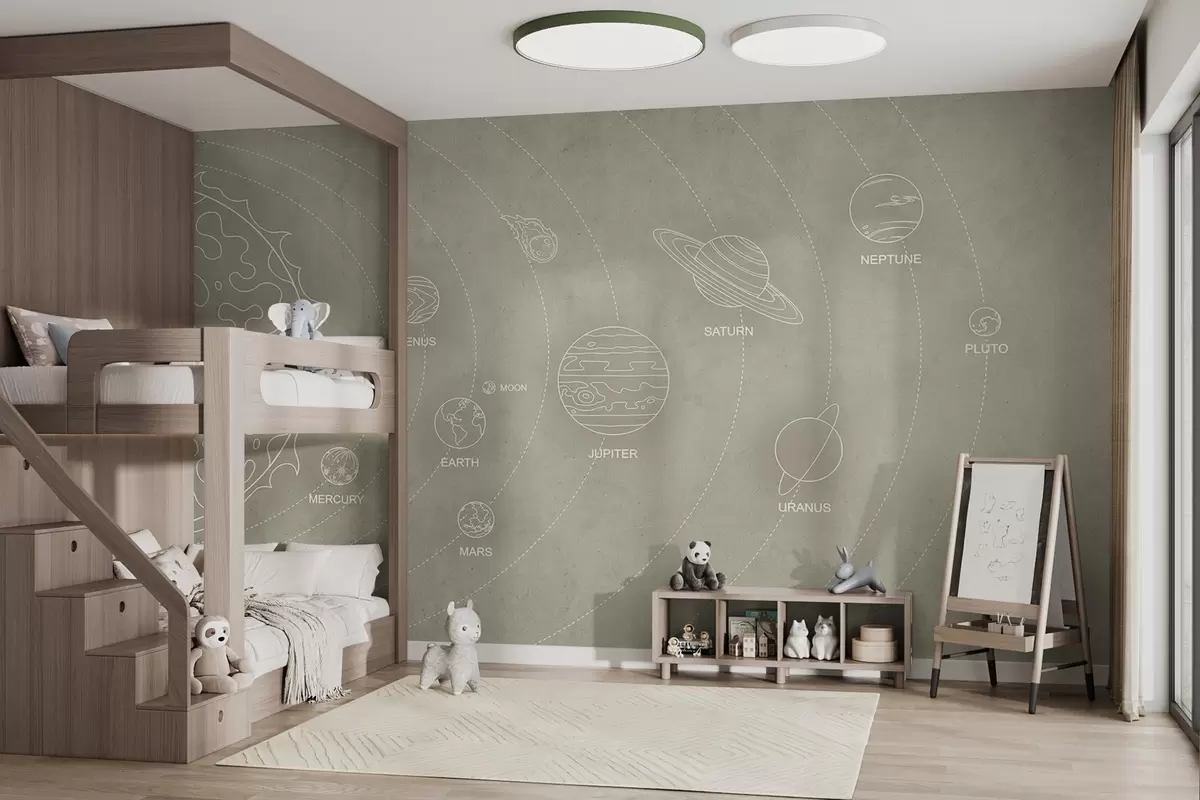 Fototapet Solsystem i minimalistisk stil på en kølig beige tekstureret baggrund Nr. w02344
