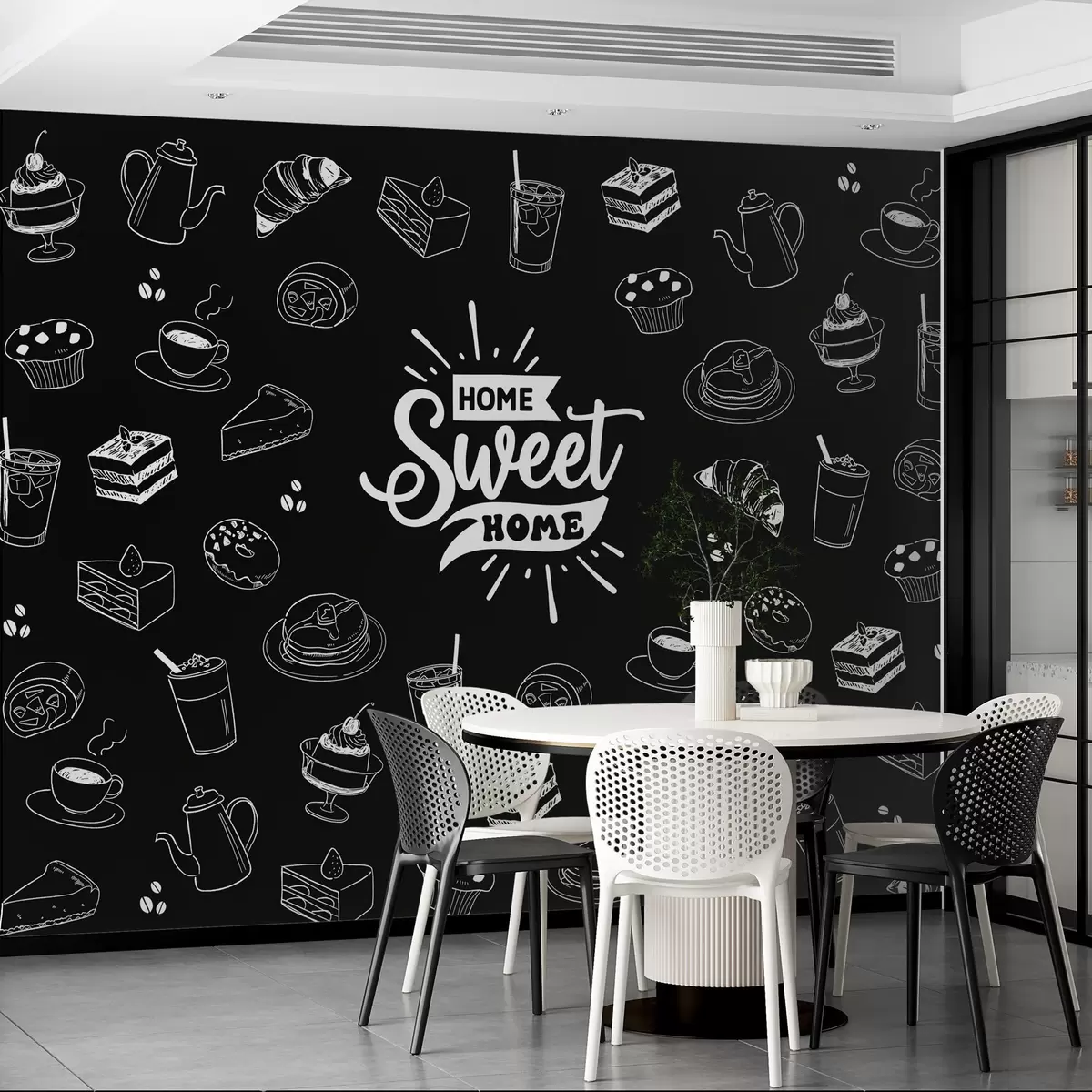 Fototapet sort tapet til køkkenet med hvide mønstre Nr. w02349