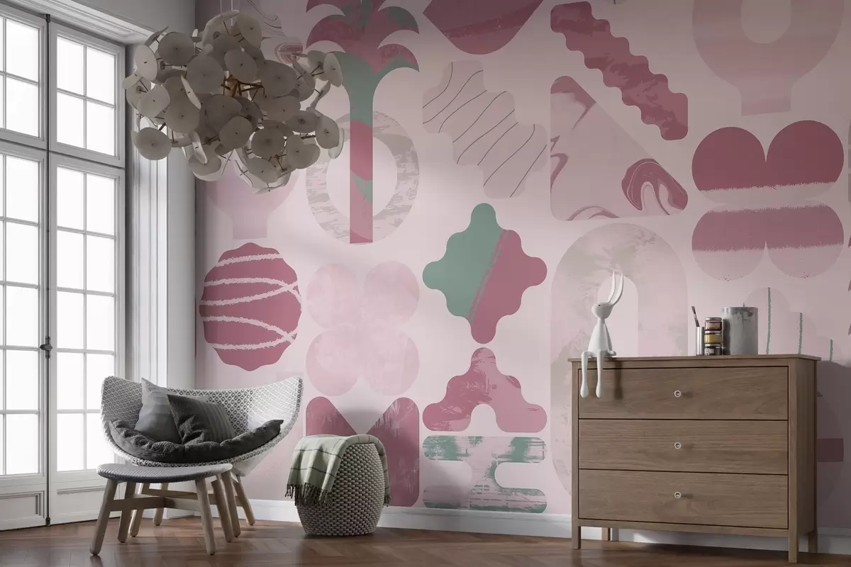Fototapet forskellige interessante former, moderne geometri i rosa farver Nr. w02550