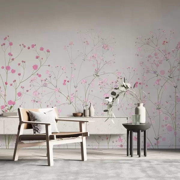 Fototapet små vilde blomster på en grå baggrund Nr. w02659