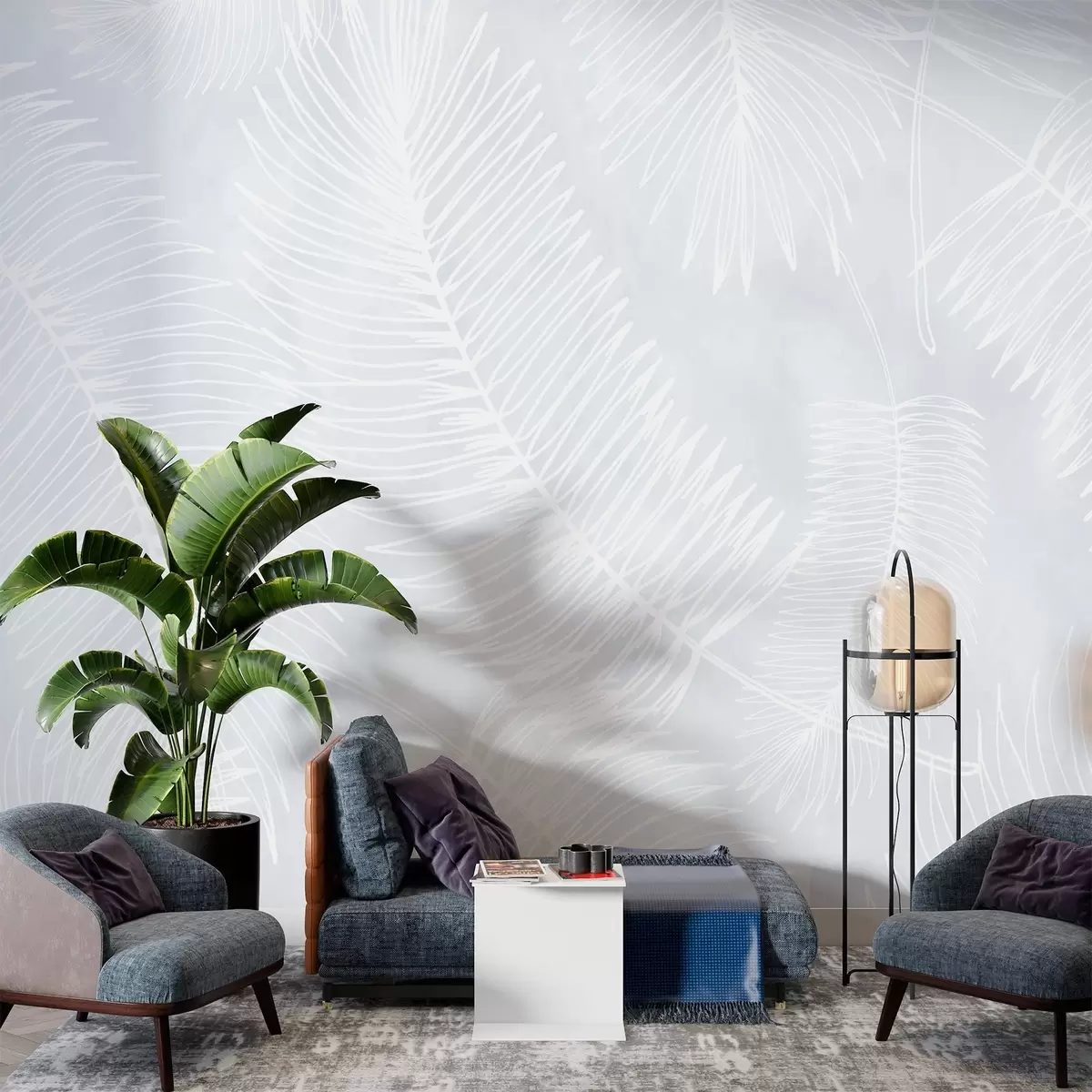 Fototapet Hvide bladsilhuetter på en struktureret baggrund Nr. w02894v1