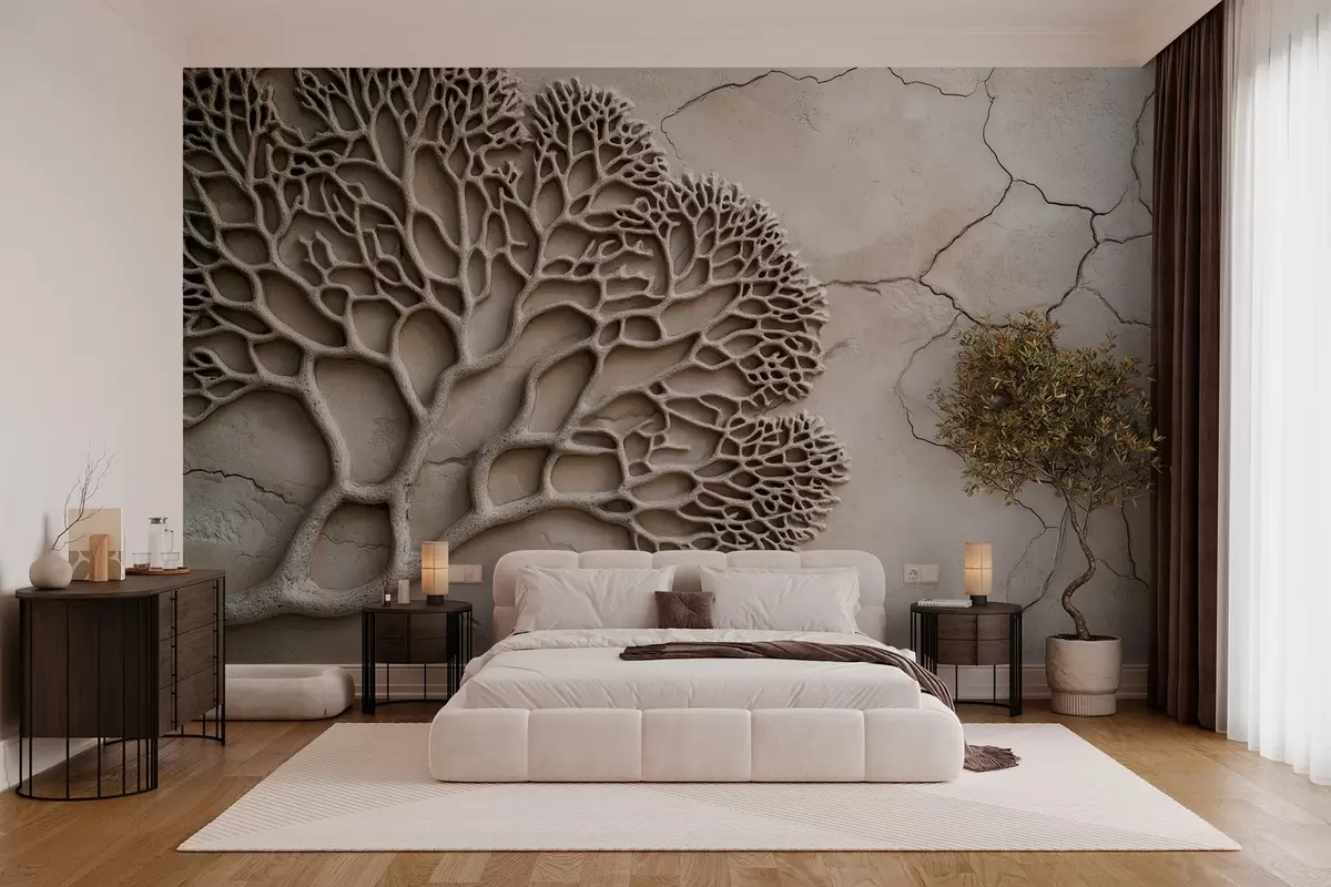 Fototapet Tapet i reliefstil med træ og sprækker Nr. w02908