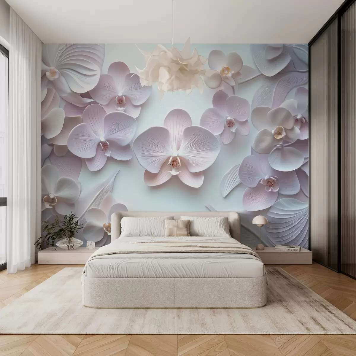 Fototapet Delikate archidia-blomster i lyse farver med 3D-imitation Nr. w02912