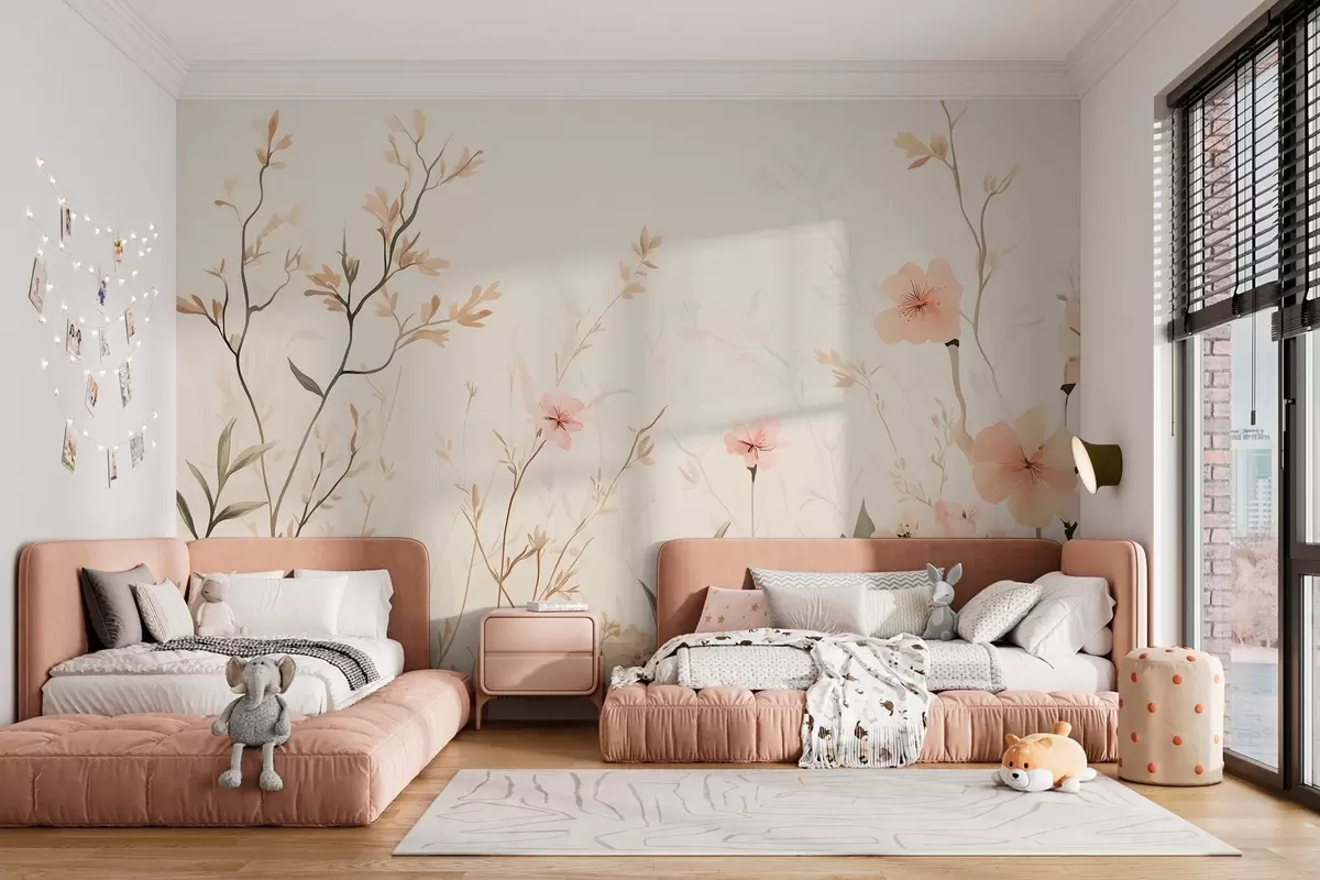 Fototapet vilde blomster med ferskenblomster Nr. w03009