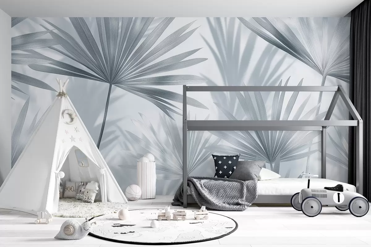 Fototapet Palmeblade, blomstermønster, minimalisme, tropisk, grå farver Nr. w03152v1