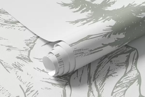 Fototapet Bjerglandskab med fyrretræer, skov, natur, blød grøn farve Nr. w03344v1