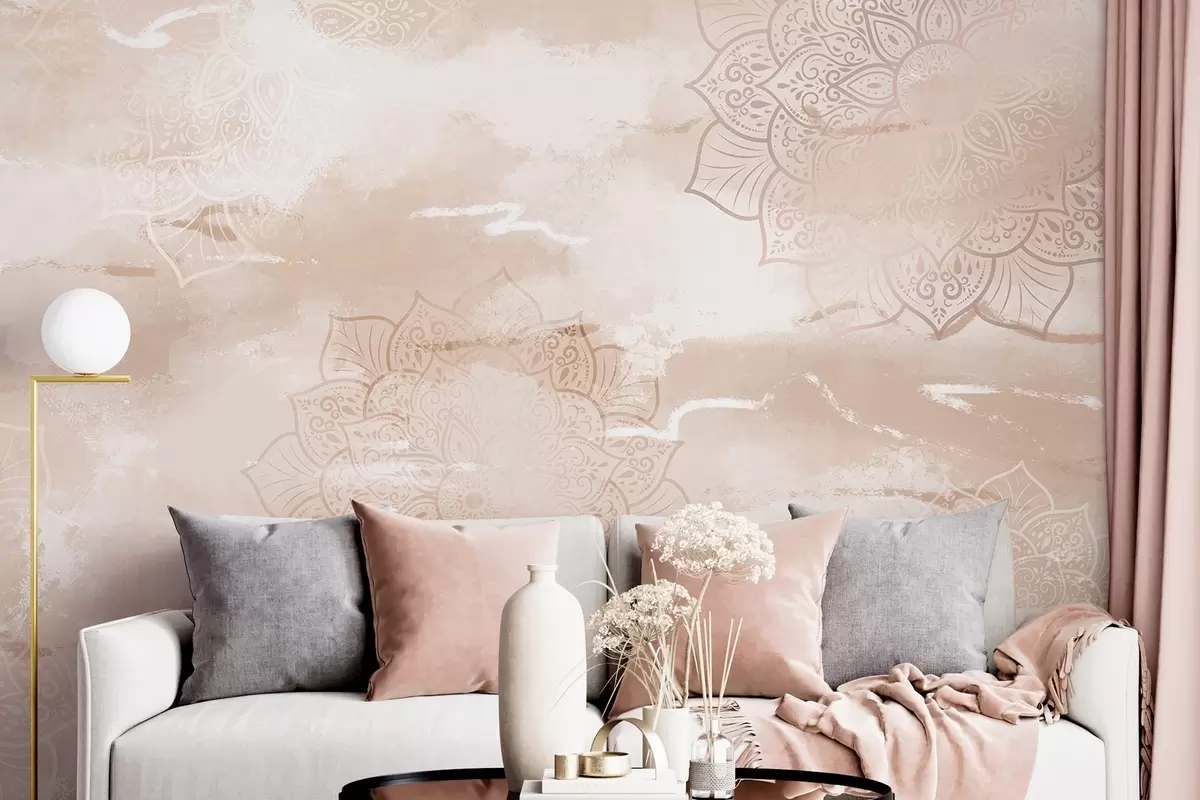 Fototapet Mandalaer på pastelbaggrund, levende penselstrøg, beige farver Nr. w03409