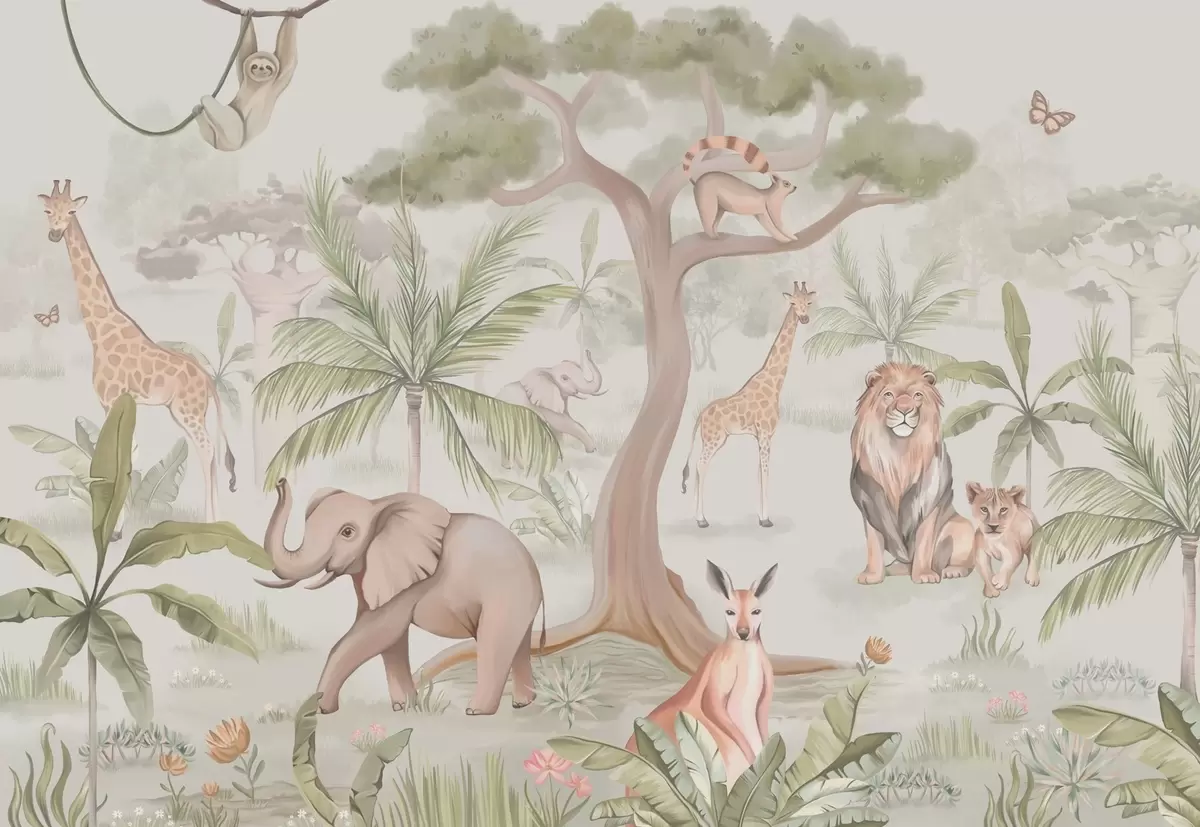 Fototapet Panorama af jungle med dyr Nr. w03444