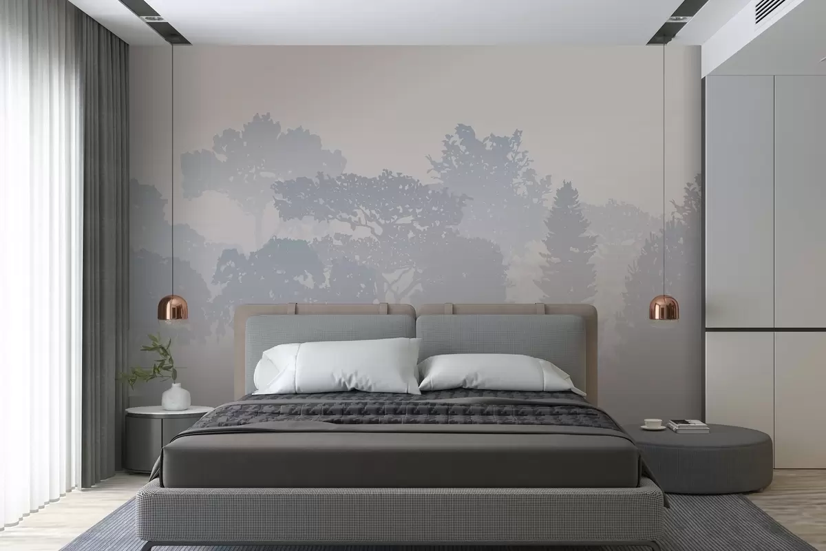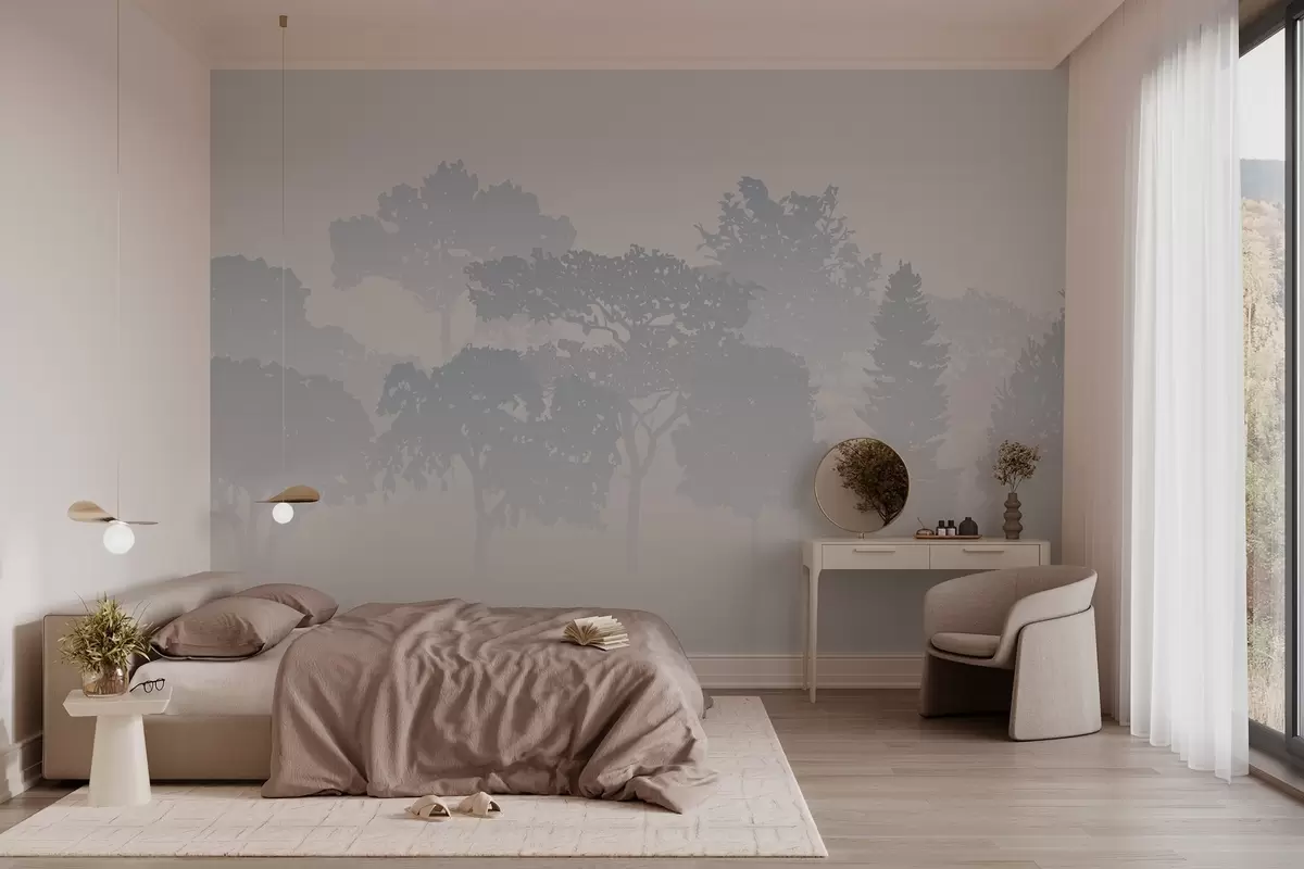 Fototapet silhuetter af træer i tågedispersionen Nr. w03451
