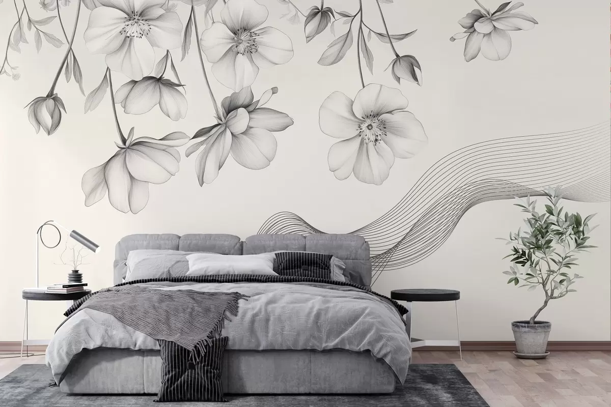 Fototapet grafiske blomster og linjer på en lys baggrund Nr. w03454