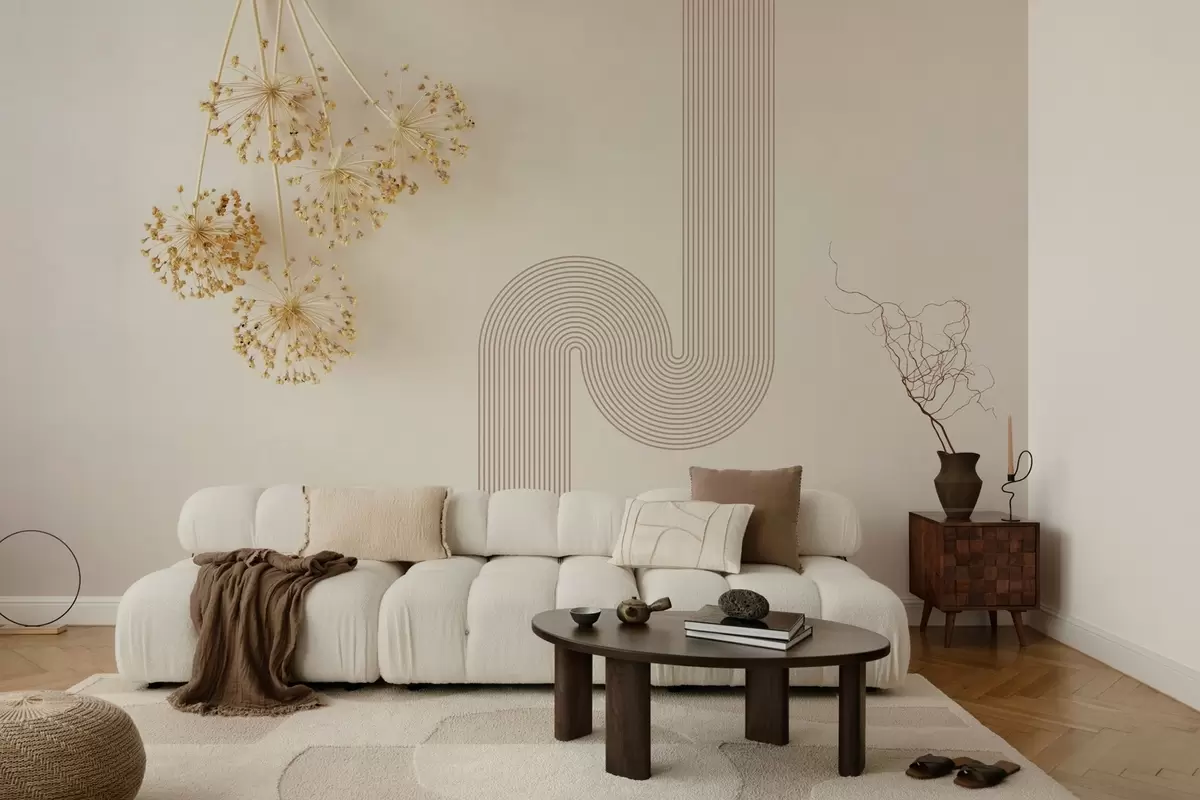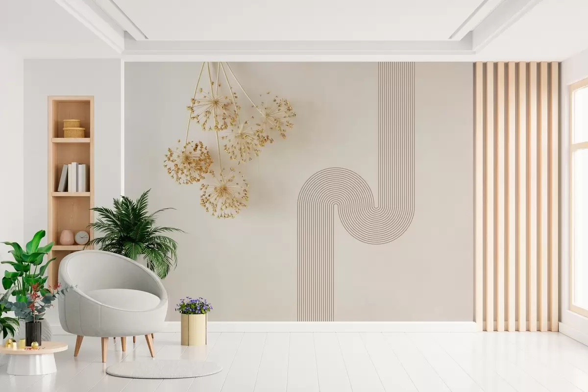 Fototapet elegante tørrede blomster og linjer i beige toner Nr. w03455