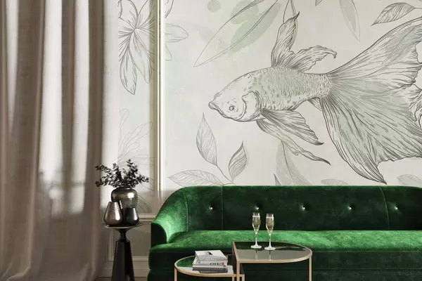 Fototapet Fisk med blomsterelementer, grøn baggrund, stregtegning Nr. w03517v1