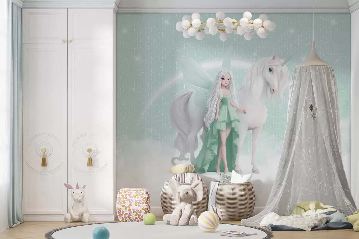 Fototapet En fe med en enhjørning blandt skyerne Nr. w03527v2