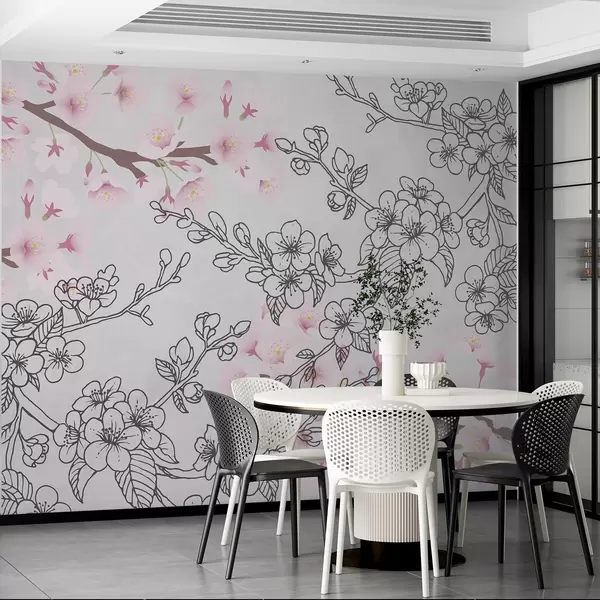 Fototapet Sakura-grene tegnet og farvelagt Nr. w03711