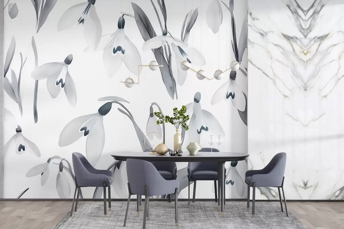 Fototapet Vintergækker i akvarelstil, grå farver Nr. w03754v1