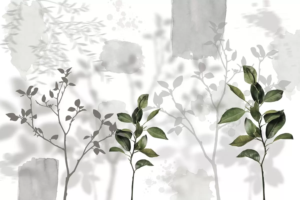 Fototapet Citrontræets blade, træets grene skygger, natur, akvarel, grøn Nr. w03910v1