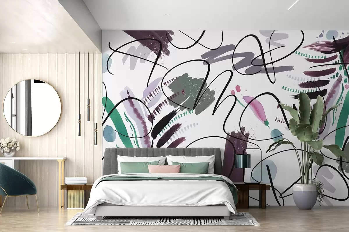 Fototapet Blækbogstaver, kalligrafi, penselstrøg, pastelfarver, abstraktion Nr. w03912v1