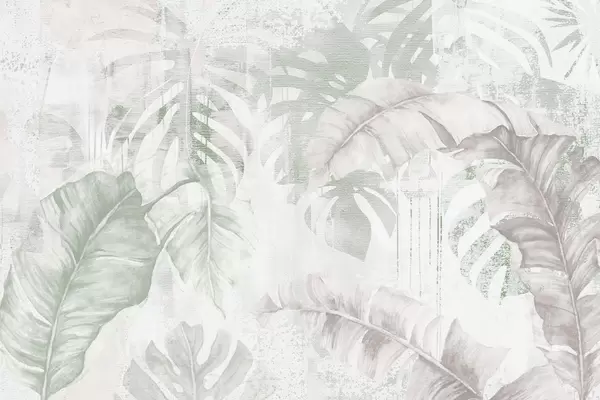 Fototapet Tropiske blade i grunge-stil, monokrome nuancer Nr. w03956v1