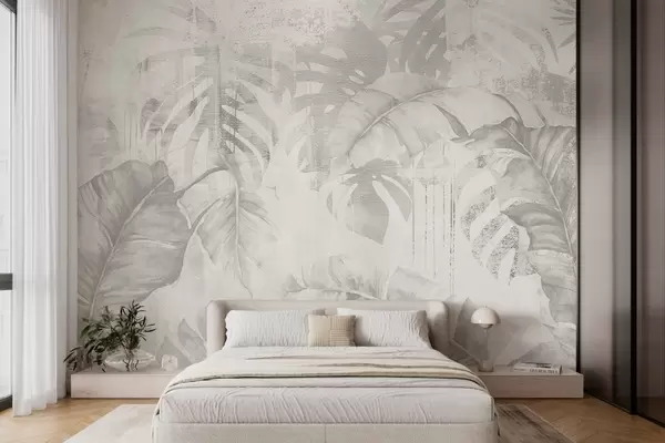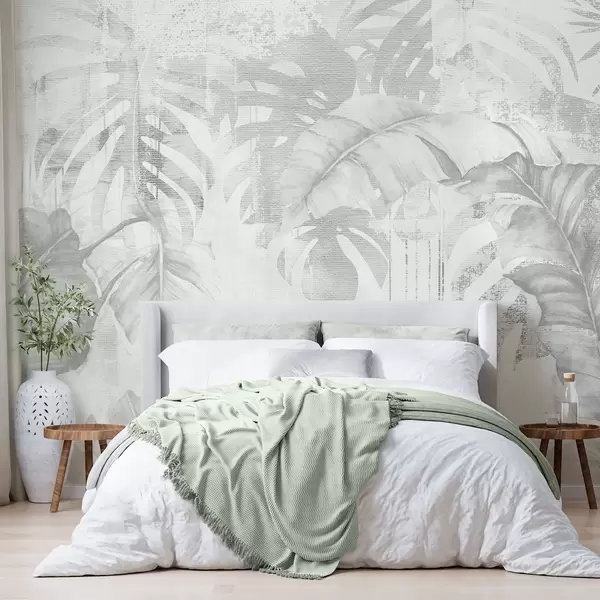 Fototapet Tropiske blade i grunge-stil, monokrome nuancer Nr. w03956v1