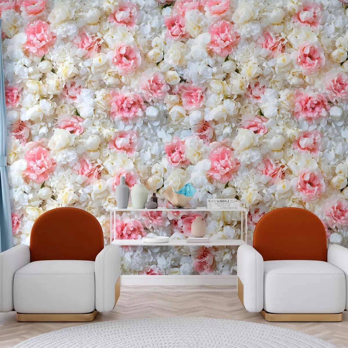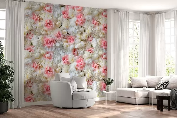 Fototapet en blomstrende mur af pæoner Nr. w03963