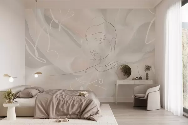 Fototapet Blomsterabstraktion med Buddha-stregtegning, beige farver Nr. w04004