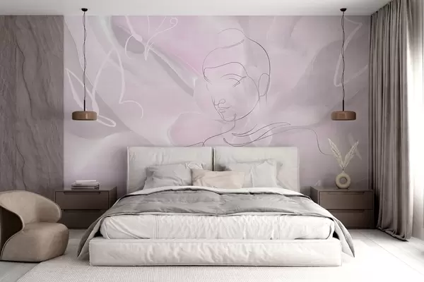 Fototapet Blomsterabstraktion med Buddha-stregtegning, pink farver Nr. w04004v2
