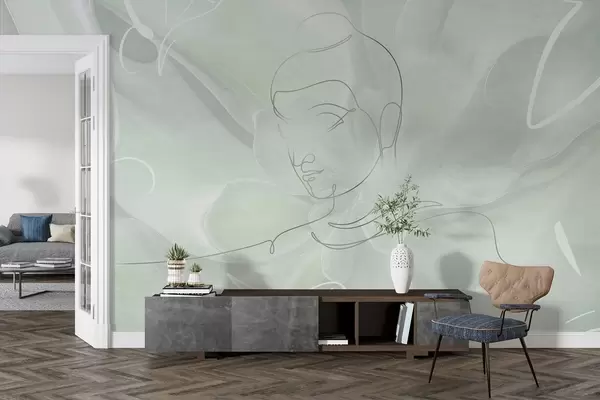 Fototapet Blomsterabstraktion med Buddha-stregtegning, grønne farver Nr. w04004v3