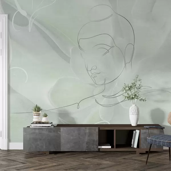 Fototapet Blomsterabstraktion med Buddha-stregtegning, grønne farver Nr. w04004v3