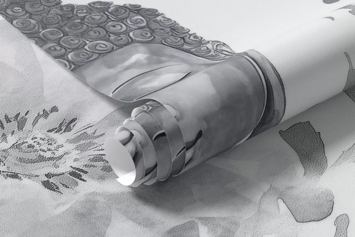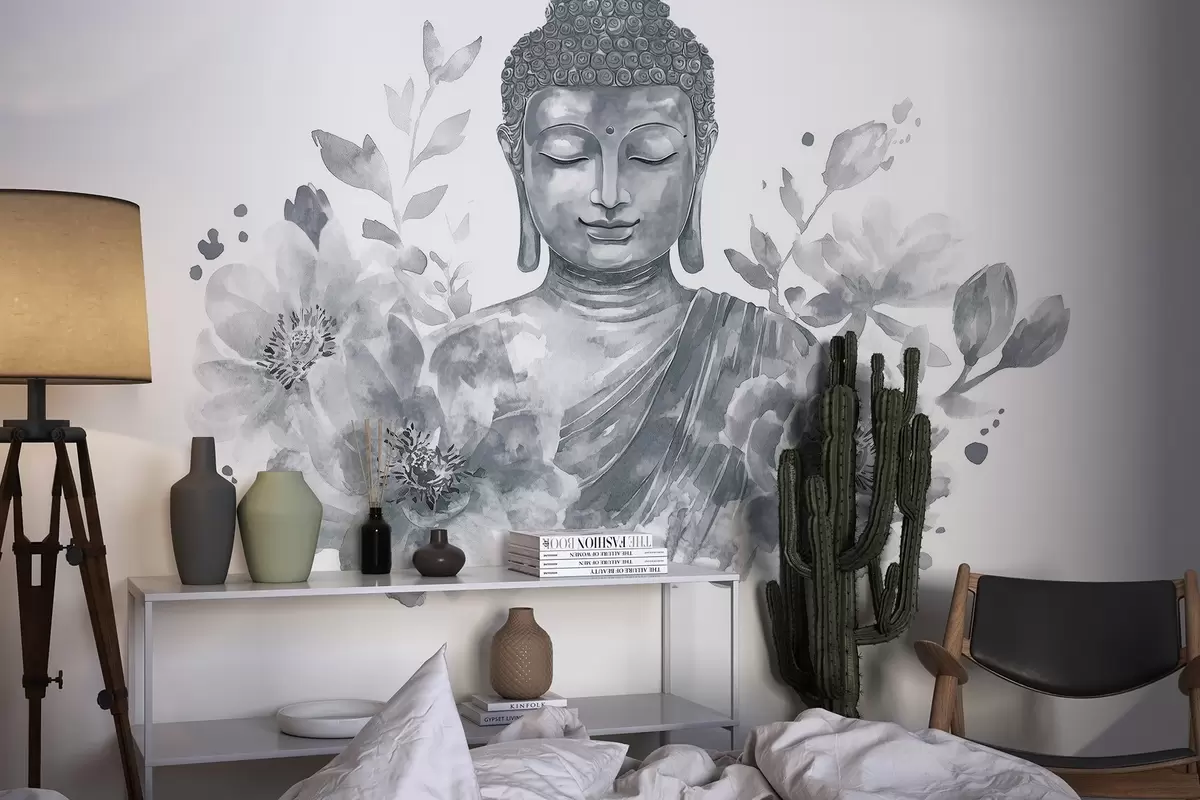 Fototapet Akvarel-Buddha med blomster, spirituel, grå farvepalet Nr. w04005v1